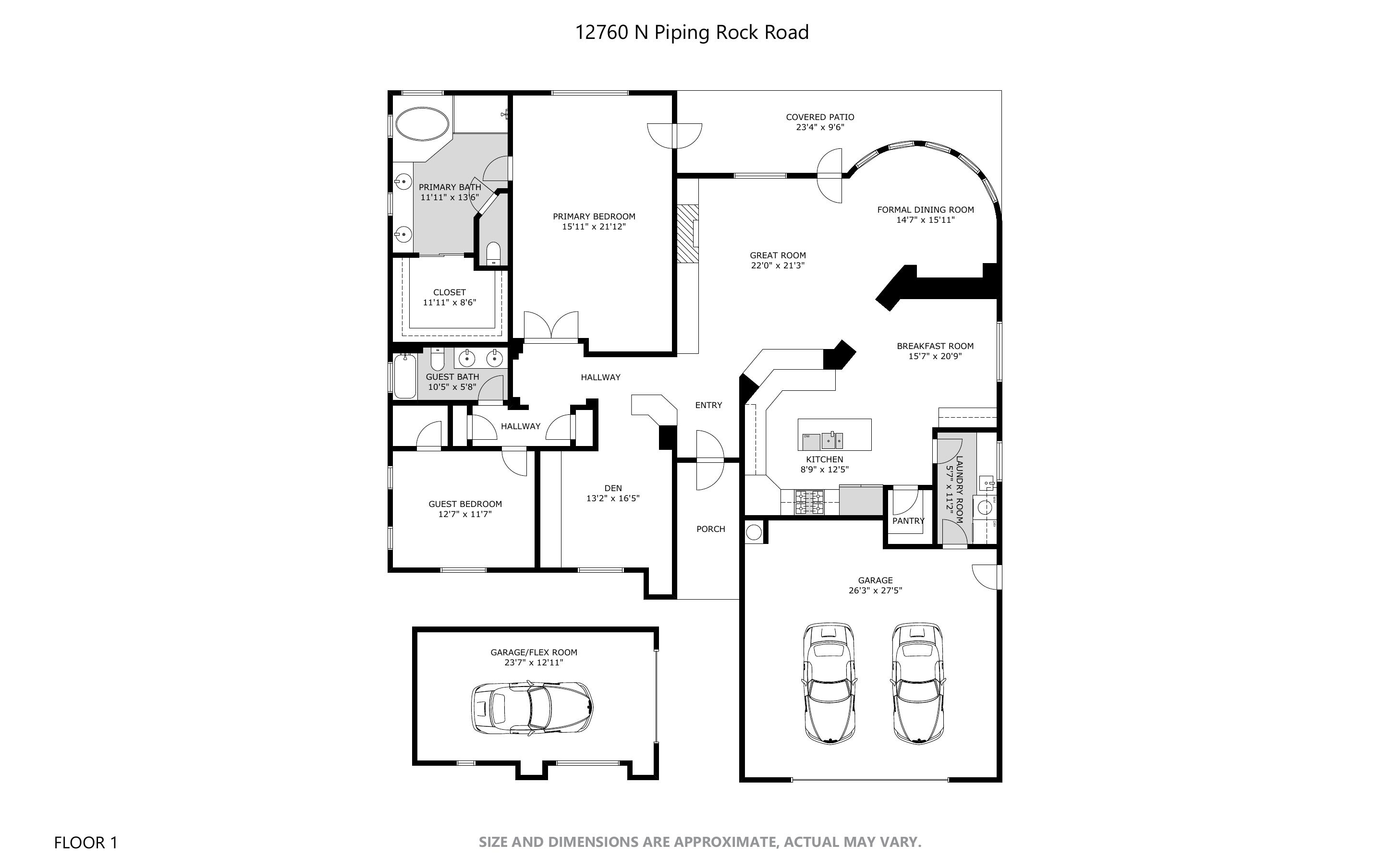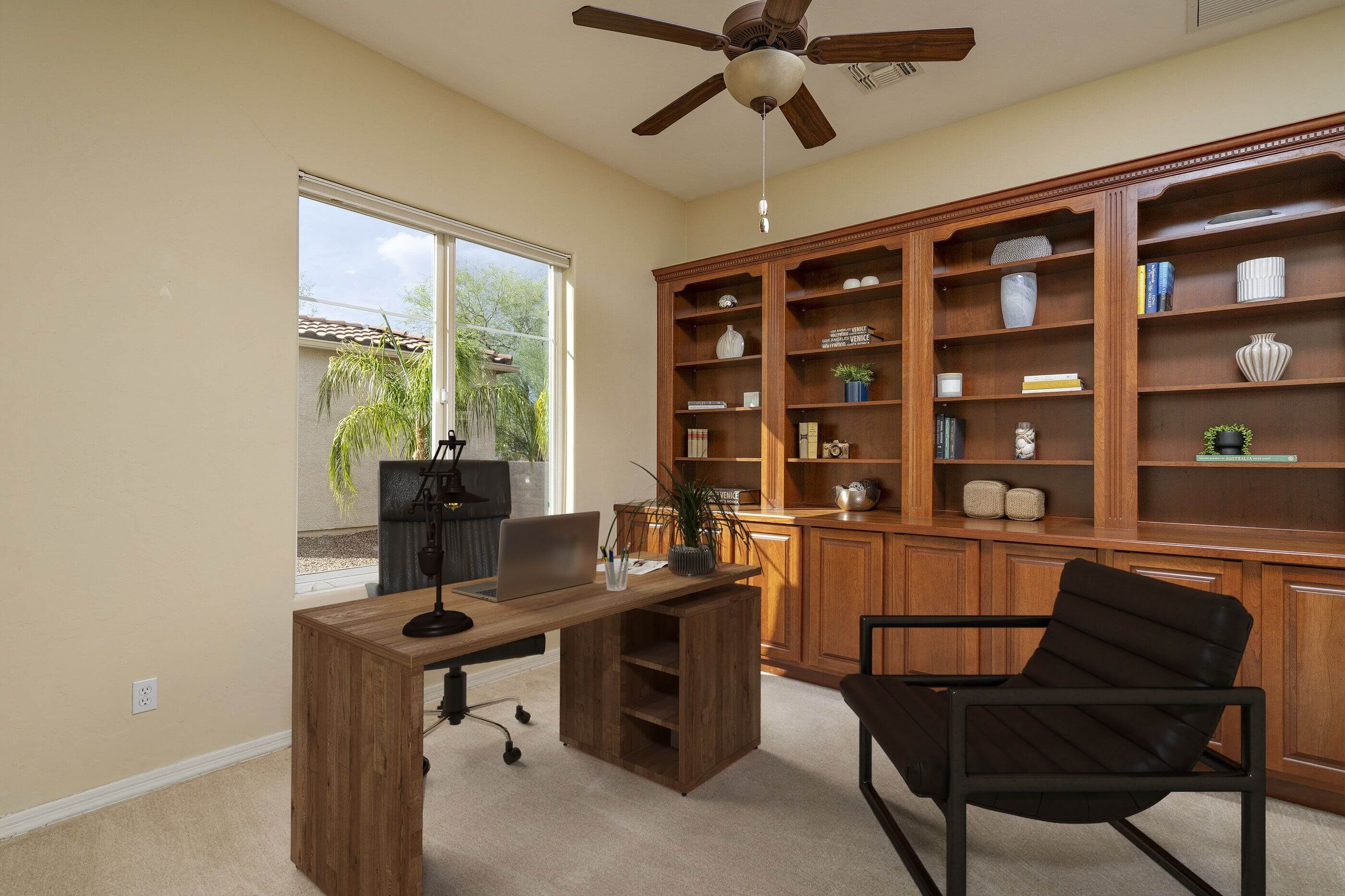 Rancho Vistoso, this 2,416 sq. ft. home offers two bedrooms + den and two full