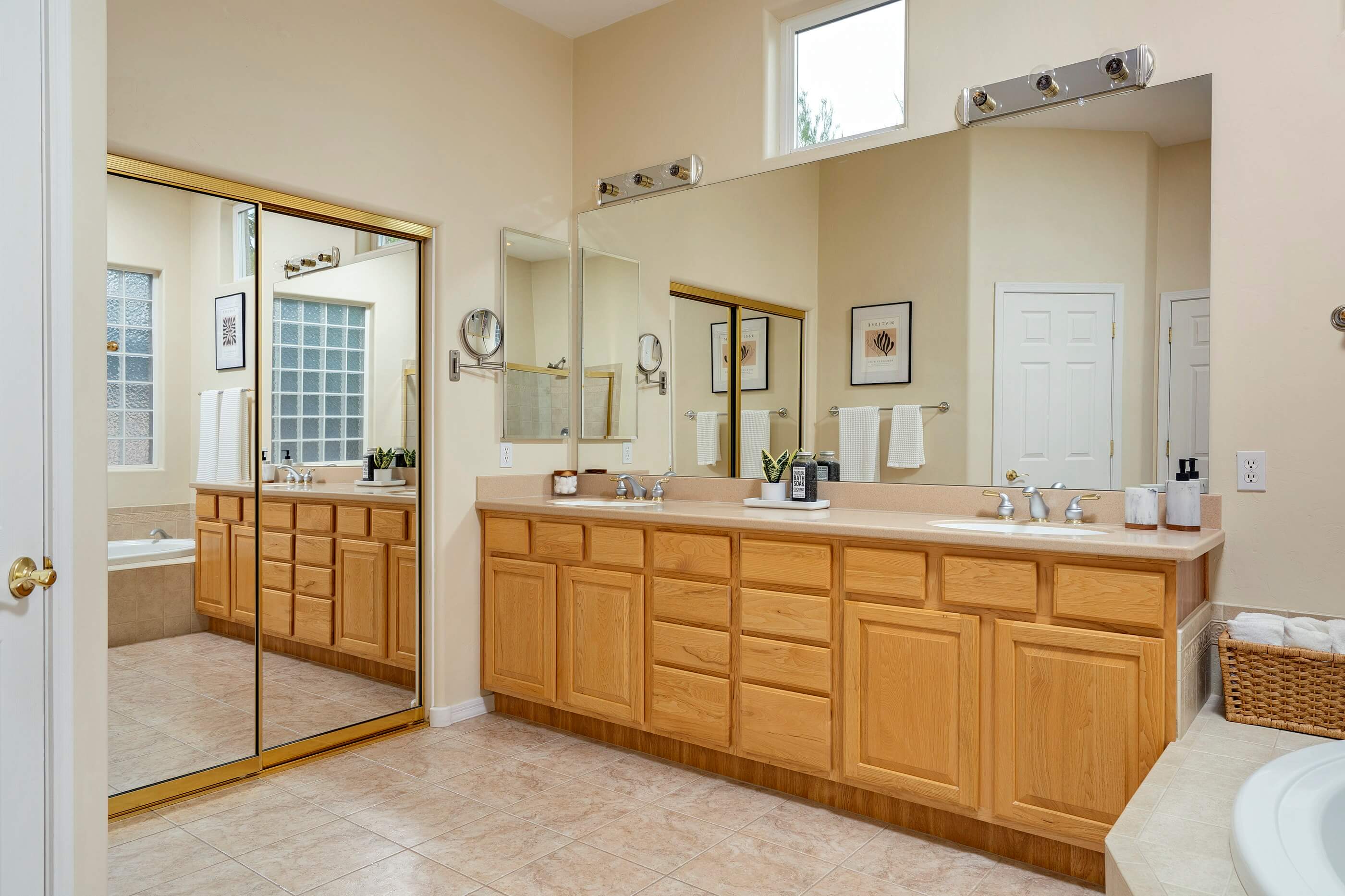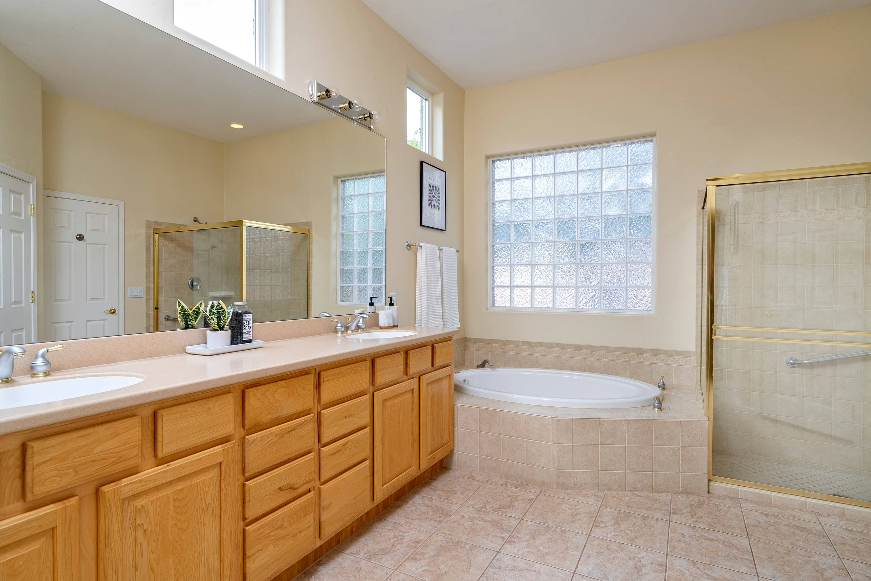 patio access, dual vanities, a garden tub, walk-in shower, and a generous