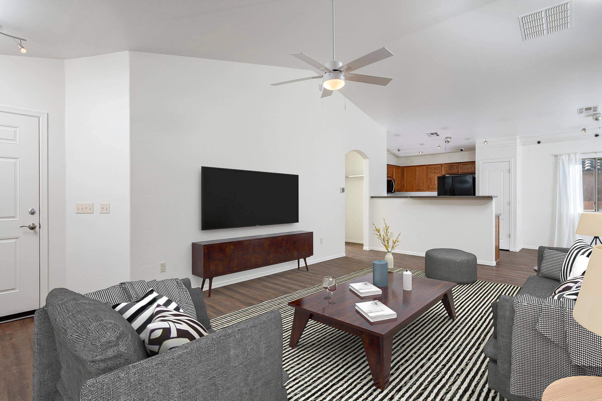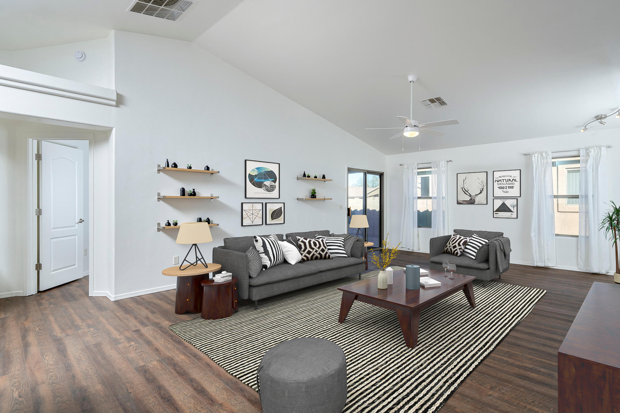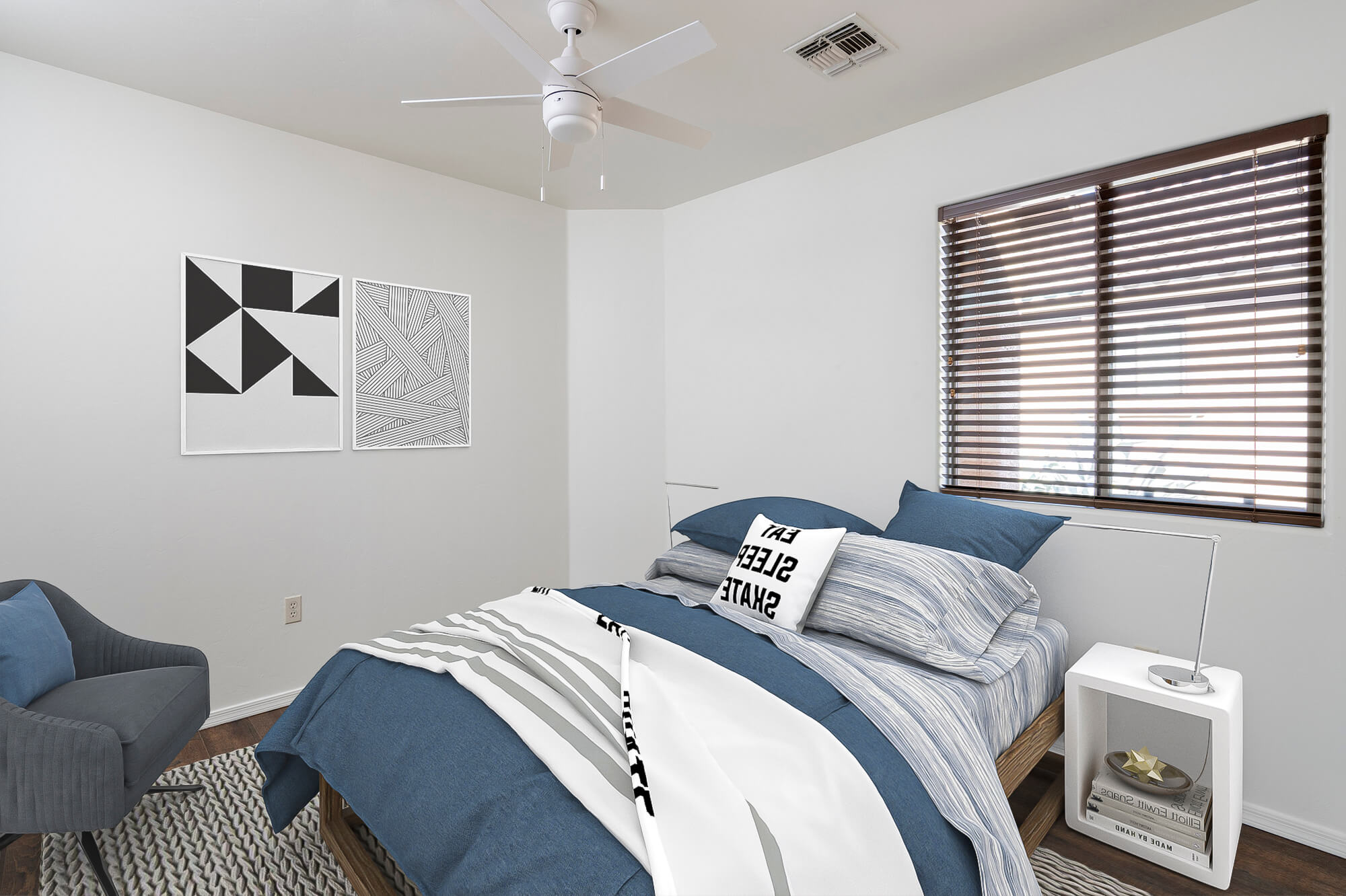 flooring, fresh paint, and new ceiling fans, lighting and window coverings, creating