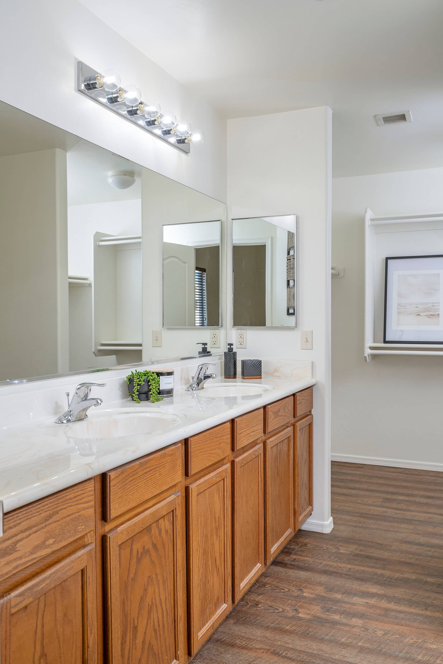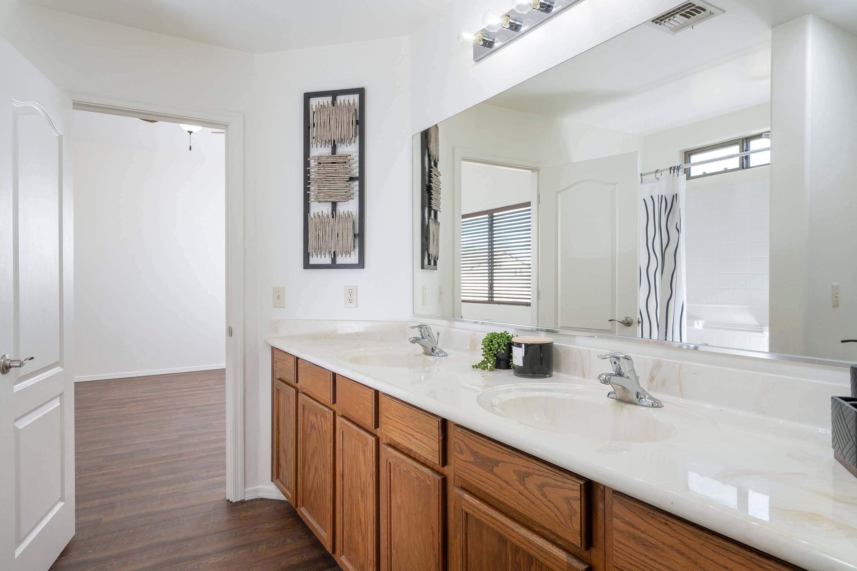 dual sinks, and a walk-in shower. Three additional bedrooms provide flexible
