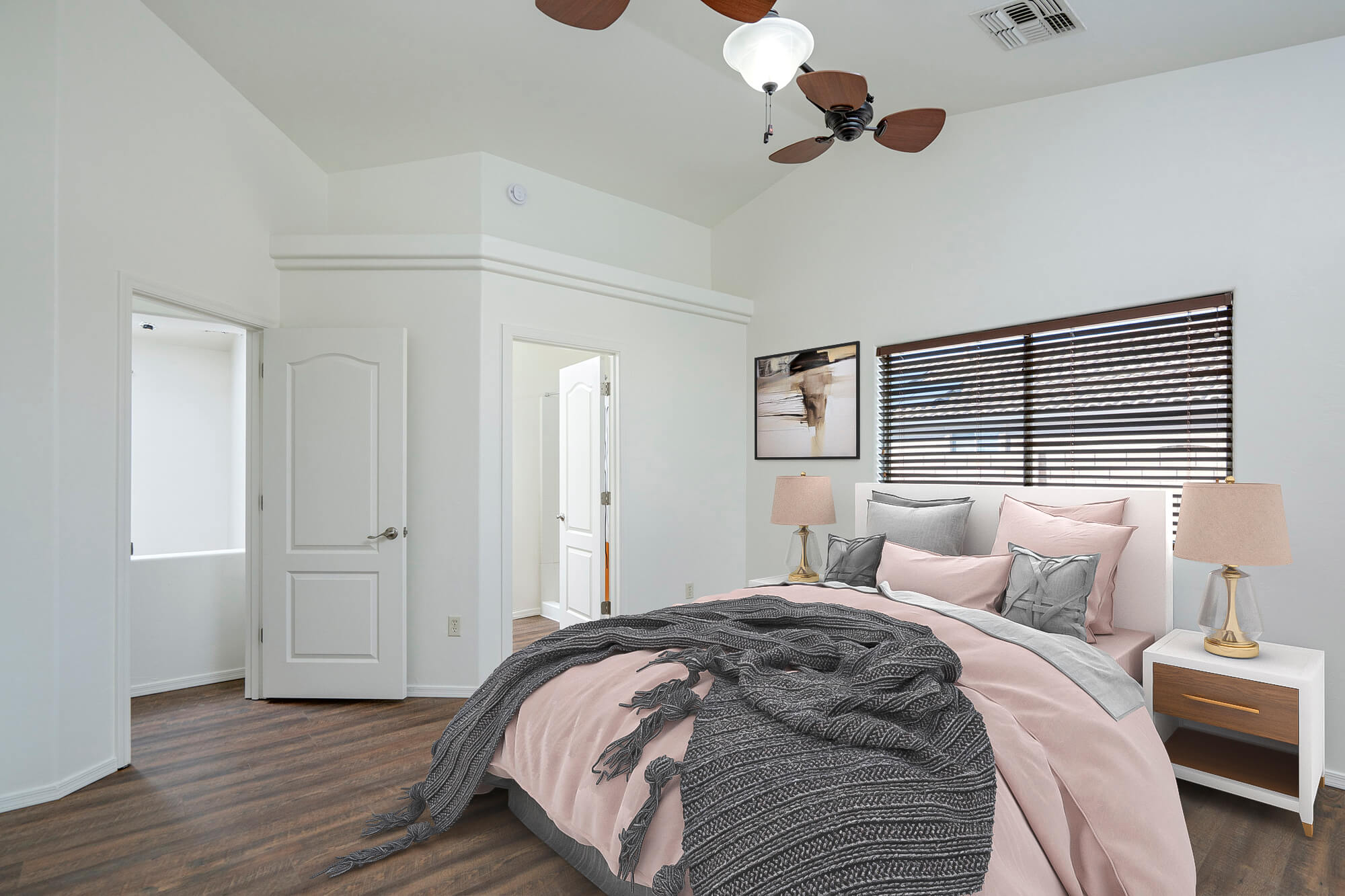 other bedrooms for privacy and has a vaulted ceiling, generous walk-in closet,